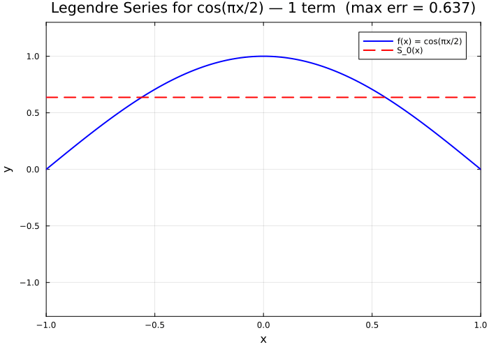 Case 2 — Legendre series for \(f(x) = \cos(\pi x/2)\)